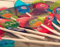 Materials: Jolly Rancher candy, lollipop sticks & Edible Monster Face images